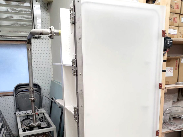 スチロールカット機と掘削機を使ったとき、スチロールの粉が飛散するのを防ぐため、仕切られた空間になっています。
