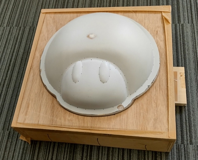 アクリルやABSなどの熱可塑性樹脂板を加熱し柔らかくした状態で、型に押し付け真空引きして密着させる装置です。基本的に、片面で抜け勾配のある形でないと成型できません。うまく成型するためには、はじめに形に応じて温度・成型スピード・サポート治具の製作など試行錯誤が必要です。ですが一度成功しマニュアルが出来上がると、裏も表もきれいな樹脂製品が1日何台も製作できるようになります。